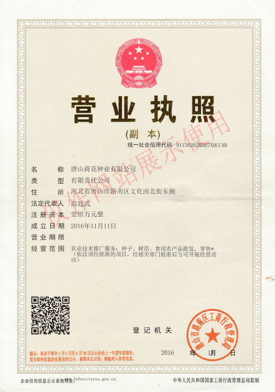 唐山荷花種業(yè)有限公司始創(chuàng)于1984年,一直秉承“科技為先,誠信為本”的發(fā)展指導(dǎo)戰(zhàn)略,注冊商標(biāo)“荷花”牌,經(jīng)過三十多年的發(fā)展,建立了從親本選育、試驗(yàn)示范、生產(chǎn)檢驗(yàn)、精選加工、推廣銷售及農(nóng)業(yè)技術(shù)咨詢一體化的經(jīng)營體系,目前擁有試驗(yàn)基地、繁育基地、制種基地、及規(guī)模化種子冷貯藏庫,完善了由科研、檢驗(yàn)、生產(chǎn)、銷售各個配套環(huán)節(jié)。荷花牌系列種子正是我們在堅(jiān)持“誠信、品質(zhì)、開拓、創(chuàng)新”的企業(yè)精神下打造的種子品牌,如今,在全國已形成強(qiáng)勢品牌效應(yīng),是一個值得信賴與具有一定影響力的種子品牌,在全國廣大用戶中贏得了良好的口碑和信譽(yù)... ...